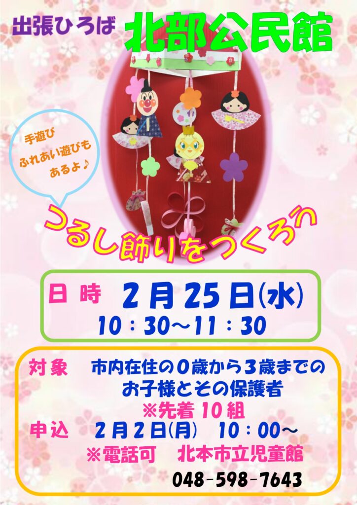 2月25日に『北部公民館』にて出張ひろばを行います!